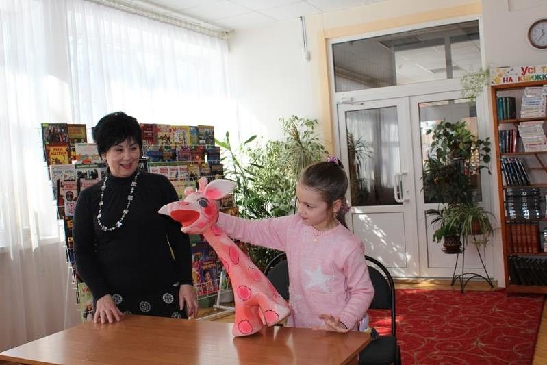 Гостя познайомила учнів 3-А класу ЗОШ № 3 зі своїми маленькими помічниками – казковими ляльками. Представила нових театральних героїв: Рожеву Жирафу та Дивного Чоловічка, імена для яких підбирала дітвора.
