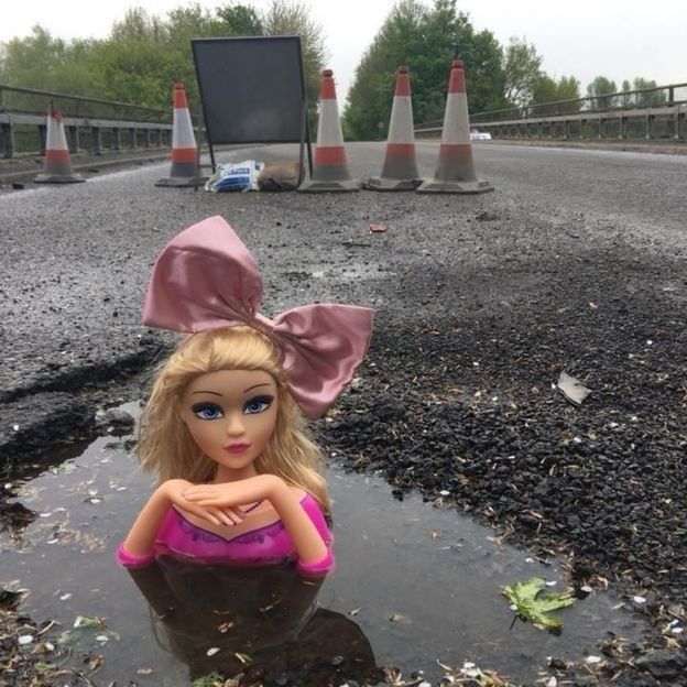 Британець садить ляльки в ями, щоб привернути увагу до поганої дороги