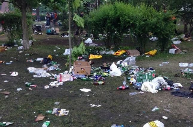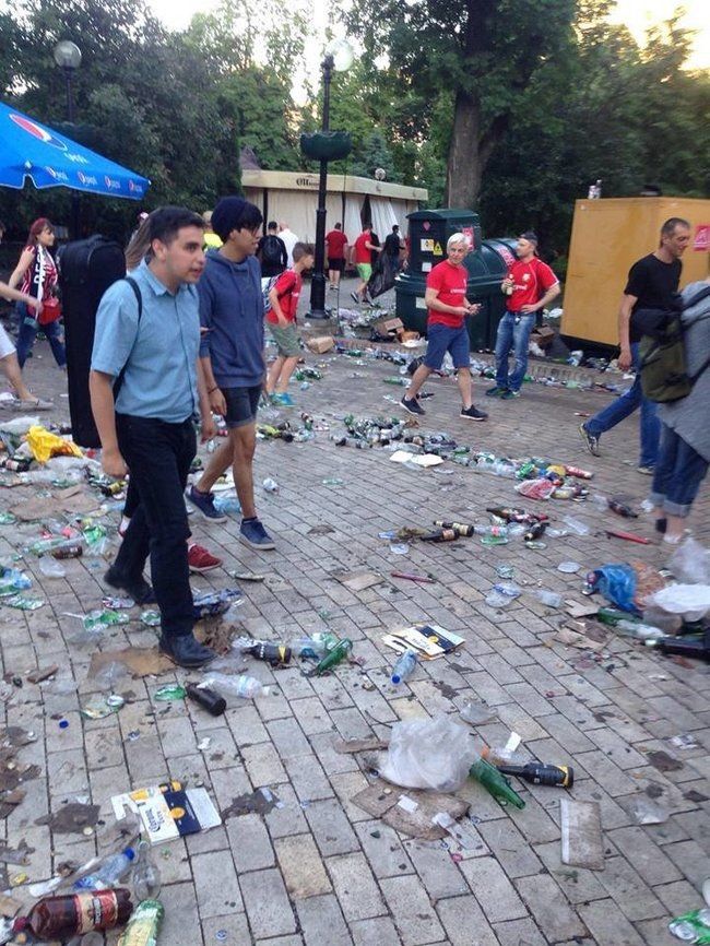 Британські вболівальники залишили після себе в київському парку Шевченка гори сміття