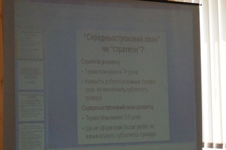 Петро Гоцалюк пояснив присутнім різницю між стратегією розвитку і стратегічним планом. Останній – короткотерміновий документ, наприклад, на 3-5 років. За його словами, в області 8 ОТГ уже мають свої стратегії, а 10 – на межі закінчення їх написання. У своїй доповіді він наголосив на важливості наявності стратегічного розвитку. Він додав, що стратегія – це узгоджений план розвитку громади, а також угода між владою, громадою і бізнесом щодо напрямків розвитку території, який сприяє згуртуванню мешканців об’єднаної територіальної громади та інструмент для залучення інвестицій.