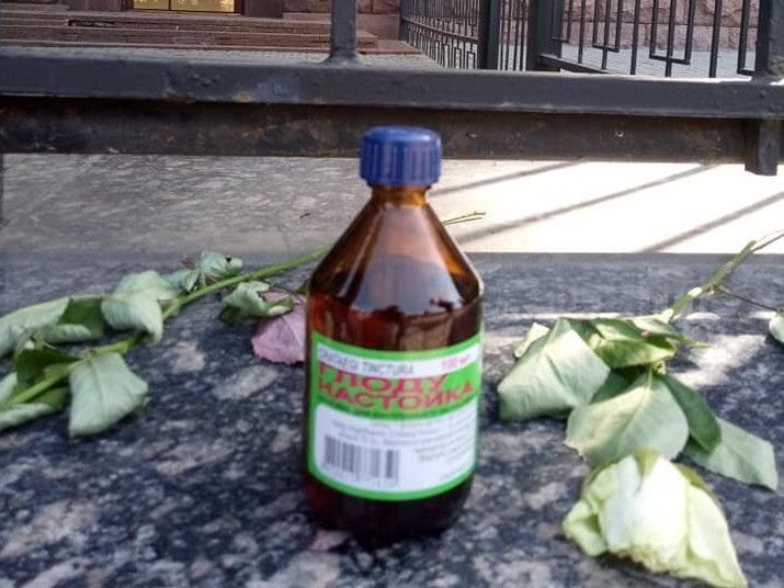 Під посольством Росії настоянкою глоду «провожають» в останню путь терориста Захарченка