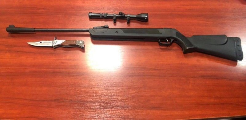 Біля гвинтівки з оптичним прицілом фірми «ТITAN» калібром 5,5 мм були приховані 27 набоїв. Ніж, загальна довжина клинка якого становить 120 мм, ширина – 4 мм, також може бути визнаний зброєю.
