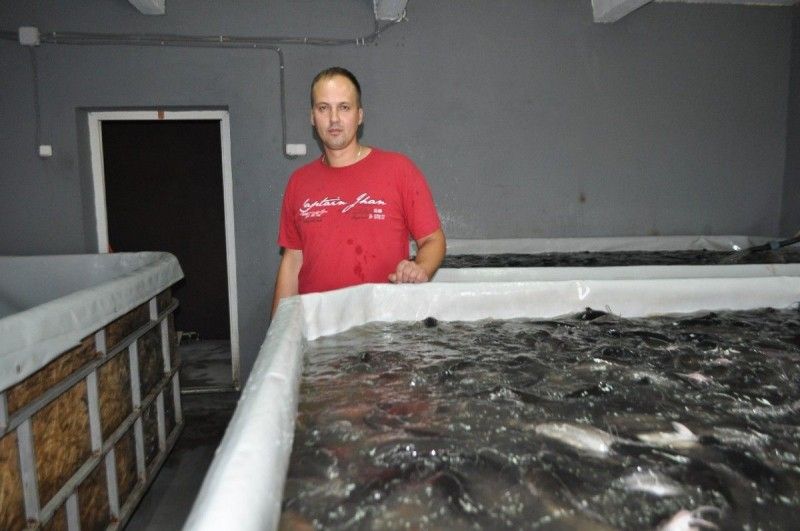 У приміщенні площею 220 квадратних метрів, яке ще рік тому було занедбаною конторою колишнього колгоспу, нині кілька залів з 10-12-тонними басейнами, вщерть заповненими рибою.