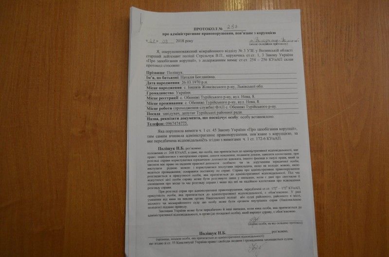 Ним стала Поліщук Наталія Богданівна, член депутатської фракції "Громадянська позиція" в Турійській районній раді, відомий сільський фельдшер, яка маючи багато проблем з особистим здоров'ям, ніколи не жаліється, а по першому дзвінку, не дивлячись на пізній час та негоду, іде пішки рятувати хворого, хто б він не був. І не запитує, є в нього гроші чи немає, а якщо немає, то використовує ліки, які закупила за свою невеличку заробітну плату сільського фельдшера. І сьогодні під приводом "підпишіть цю бумагу і вам за це нічого не буде, це формальність" її просто всю заберуть, (такий закон вони придумали, щоб більше ніхто з селян не хотів стати депутатом) і план по виловлюванню корупціонерів в Україні - виконають.