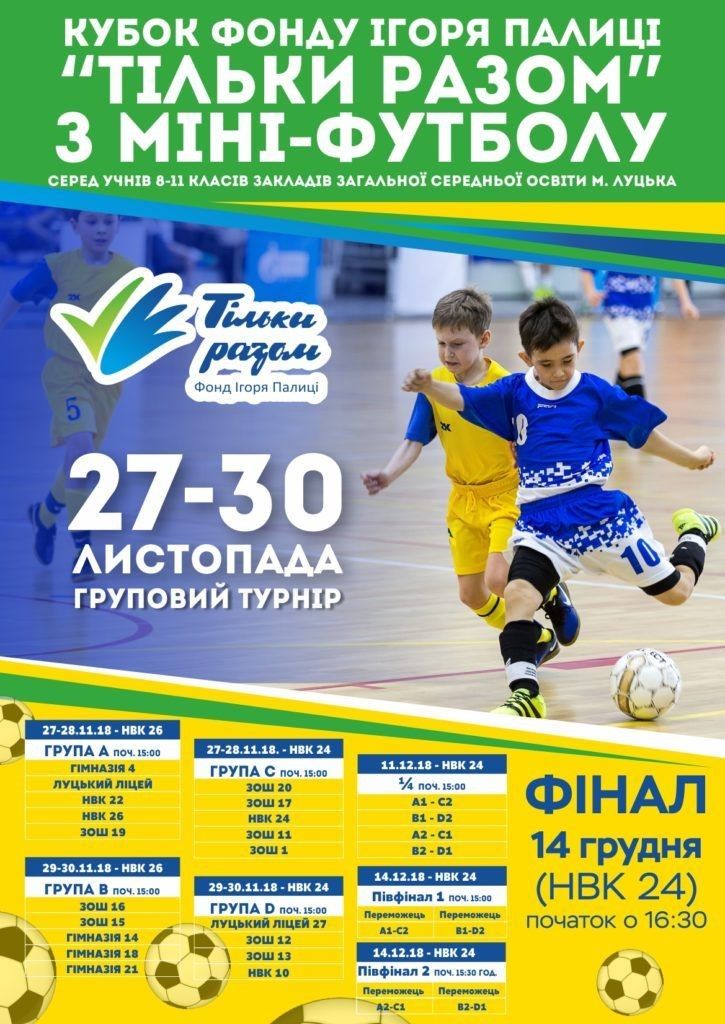 16 листопада у Луцькому НВК №9 відбулося жеребкування команд для участі у Кубку Фонду Ігоря Палиці «Тільки разом» з міні-футболу. Участь у змаганнях візьмуть учні 8-11 класів луцьких шкіл