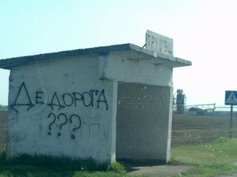 Ващук також опублікував фото, зроблене під час поїздки. На зупинці громадського транспорту хтось написав «Де дорога?». «Філософське і практичне питання, особливо гостре в Черкаській області: «Де дорога?», - написав посол.