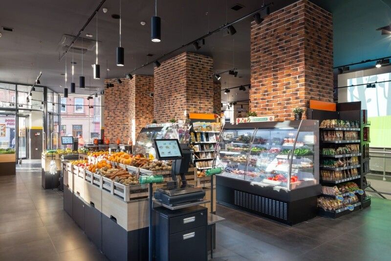 Комфортна висота обладнання Modern-Eхро дає можливість бачити весь простір та знаходити необхідні продукти чи сувенірку легко й неспішно. Крім того, компанія поставила в магазин холодильні пристінні регали, касові модулі, прикасові зони, технологічне обладнання.