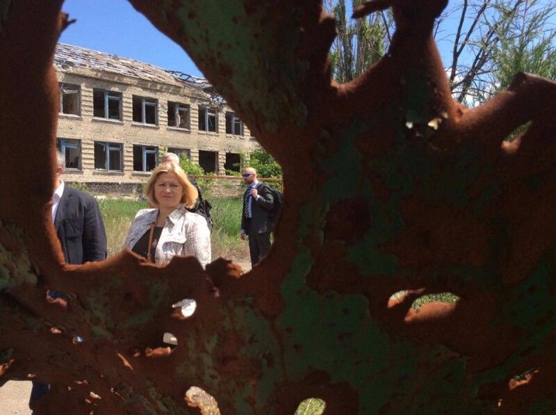 «Красногорівка, де немає жодного необстріляного будинку. Катеринівка, звільнена в січні 18, куди чи не кожну ніч пробиралися ворожі ДРГ й ставили розтяжки, й де кожну вулицю охороняють наші військові. Українське село, де живе 42 школяра, які мають вчитися в нашій школі, а не їздити на навчання в « ЛНР». Золоте, де, згідно домовленосте саміту нормандського формату в жовтні 15, ми в березні 16 побудували і відкрили КПВВ. Й, до речі, саме під відкриття КПВВ в Мінську обговорювали розведення там важкоі техніки і військ . Але ... Пункт так і не працює, бойовики заблокували його відкриття й протягом цих 3 років побудували там фортифікаційні споруди і наростили свою присутність. На останній зустрічі з тодішнім міністром ЗС Німеччини паном Штаймайером , на якій обговорювалася гуманітарна ситуація на Донбасі, я запропонувала йому разом з представниками ОБСЄ ще раз відвідати Донбас, заїхати в Золоте і відкрити КПВВ, можливо за такої високої присутності бойовики перестануть мурижити це питання...