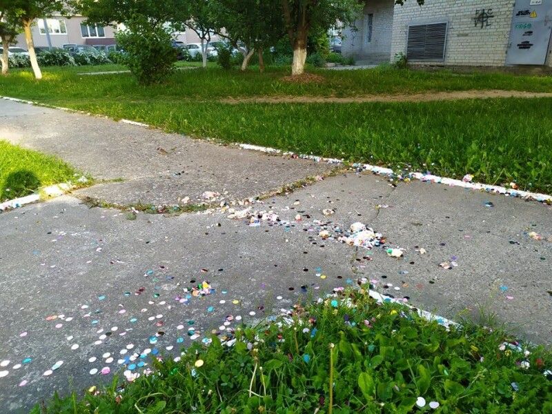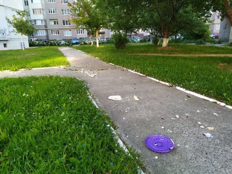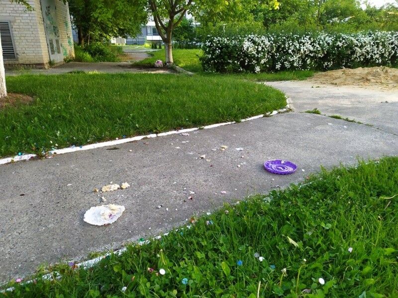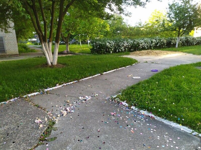 Проте остаточно оцінити розмах нічного святкування можна було лише вранці. На місці запуску феєрверка лишилися не тільки блискітки (які прибрати справді було не надто реально) та шматки святкового торта (на радість місцевим горобцям), а й коробка з-під цього кулінарного виробу (що вже скидалося на відверте свинство).