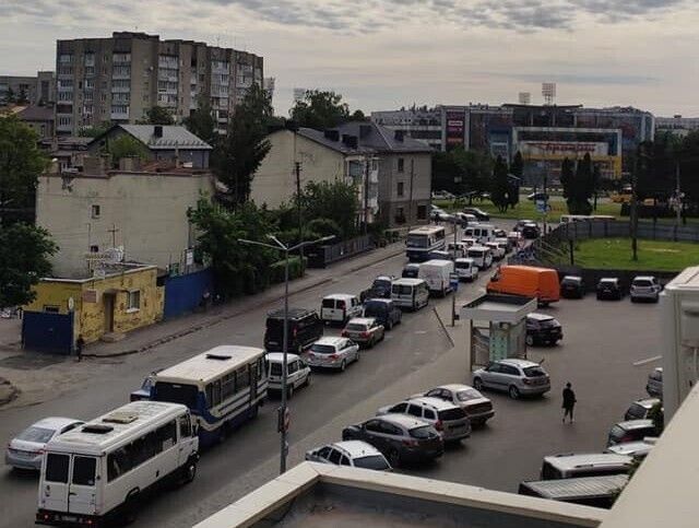 Станом на 8.55 кількість авто не зменшилося. Автомобілі рухаються повільно в сторону «Променя».