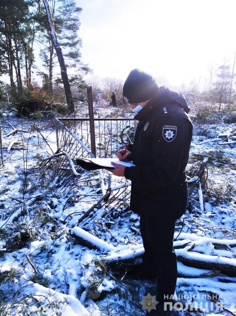 З’ясувалося, що підприємець, зрубуючи ялинки, пошкодив 15 могил. Правоохоронці зафіксували зламані хрести, пошкоджені пам’ятники та огорожі могил.