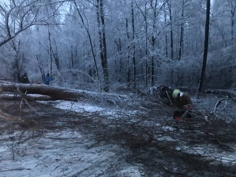 Відділення 16 ДПРЧ селища Стара Вижівка за допомогою бензопили порізали дерева та відтягнули їх з дороги.