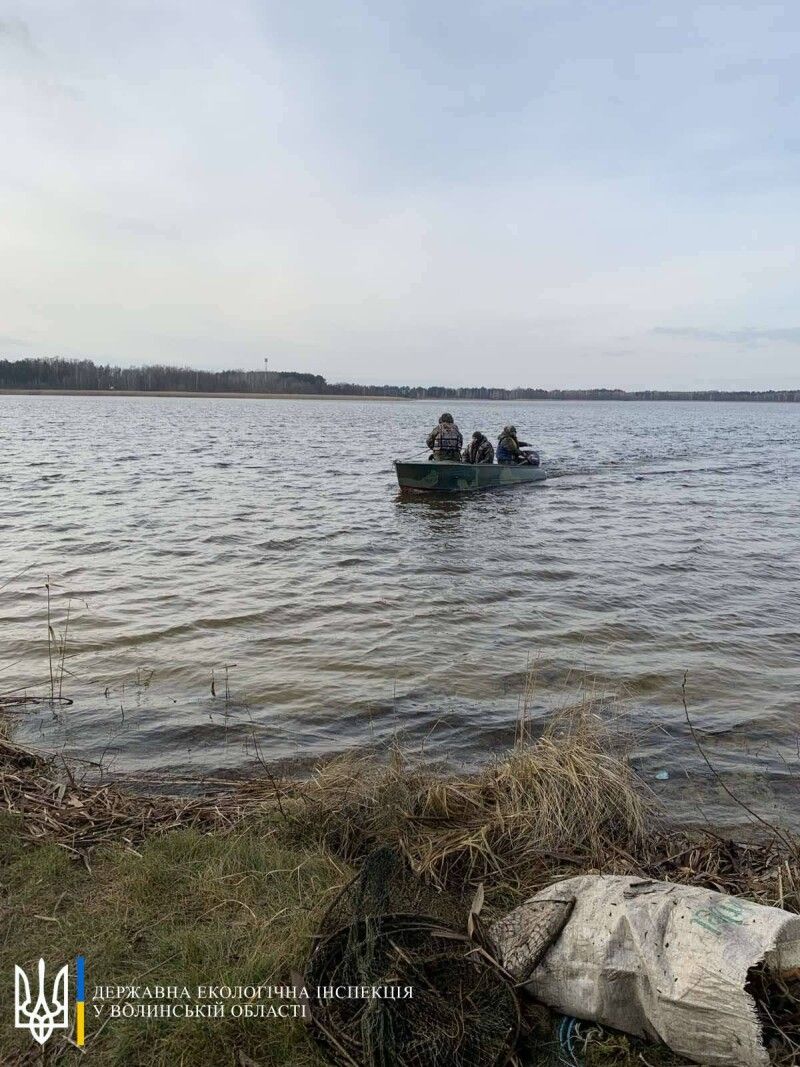 Також в ході природоохоронного заходу спільно з працівником Локачинської УТМР при обстежені ставка поблизу села Хорів було виявлено і вилучено з води безгосподарську сітку, в якій був птах без ознак життя.
