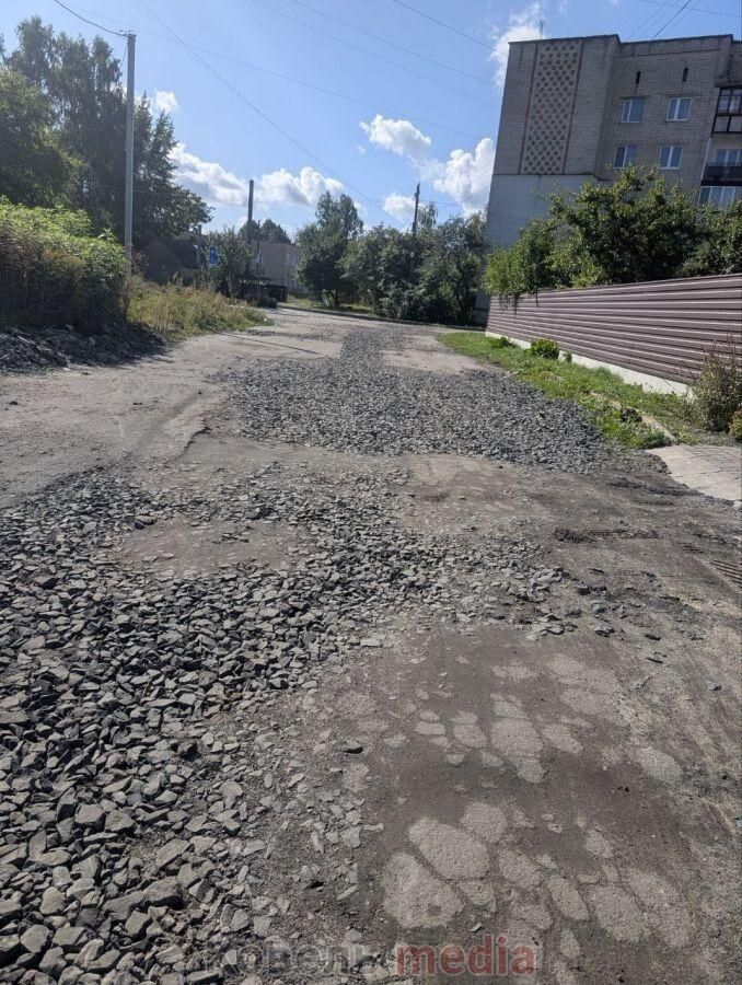 За його словами, з кінця весни на вулиці розпочали ремонт: дорожники зняли покриття та засипали все щебенем, але роботи досі залишаються незавершеними.