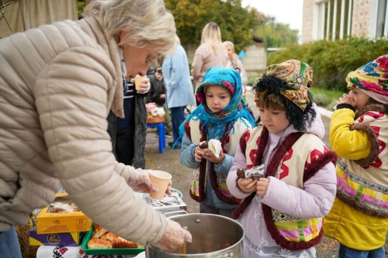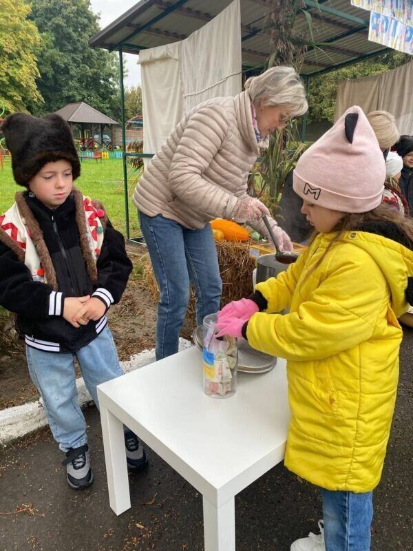 На столах, прикрашених осінніми композиціями, були овочі, вирощені власноруч дітьми на городі дитячого садка – морква, помідори, огірки та буряки. Не обійшлося й без смачних частувань – пиріжки, печиво, запашний чай — усе приготовлене з любов’ю працівниками і вихованцями садочка.