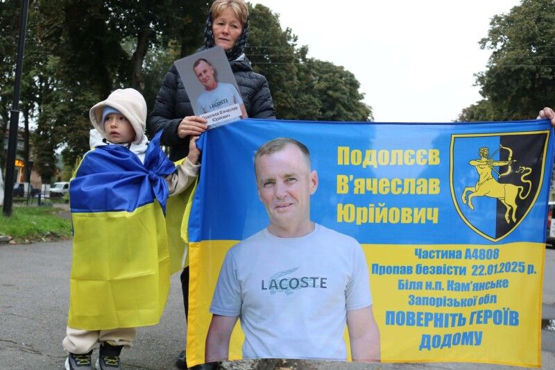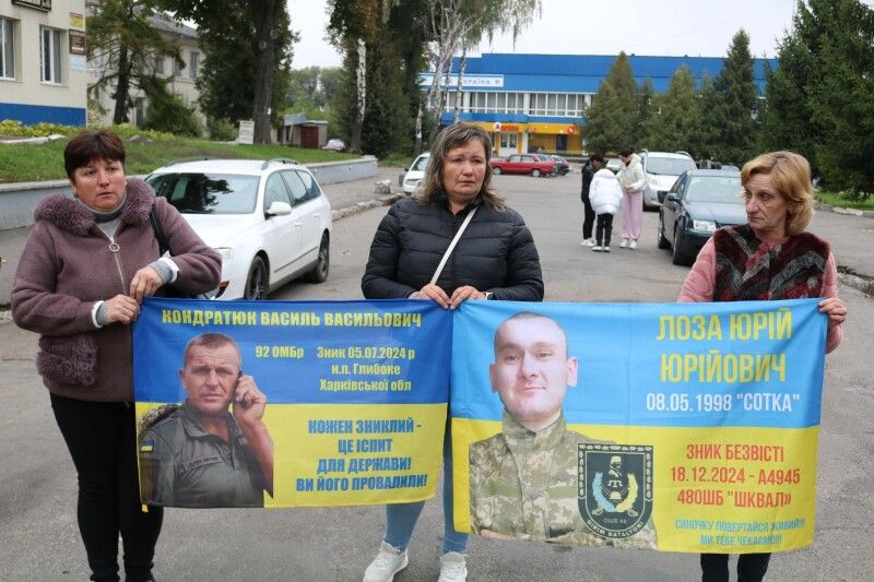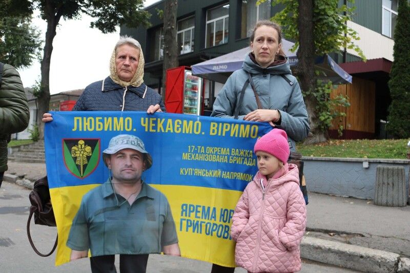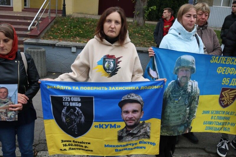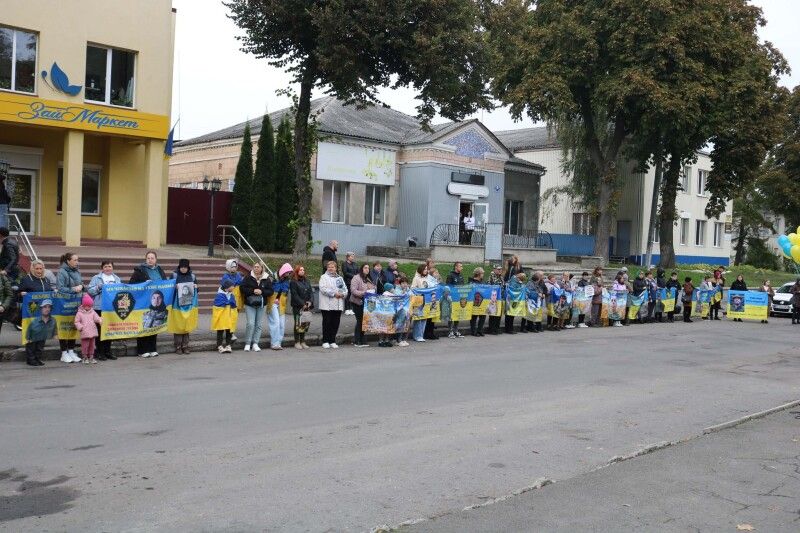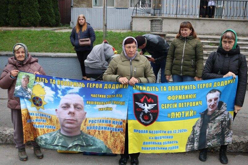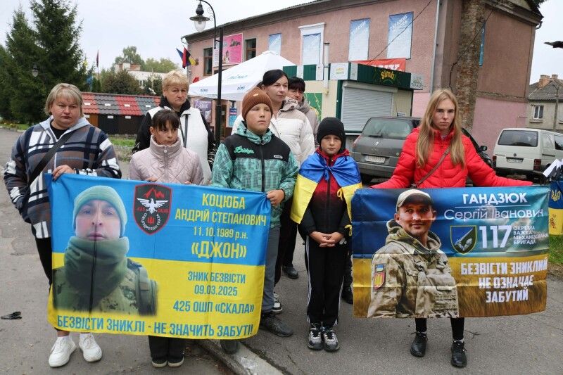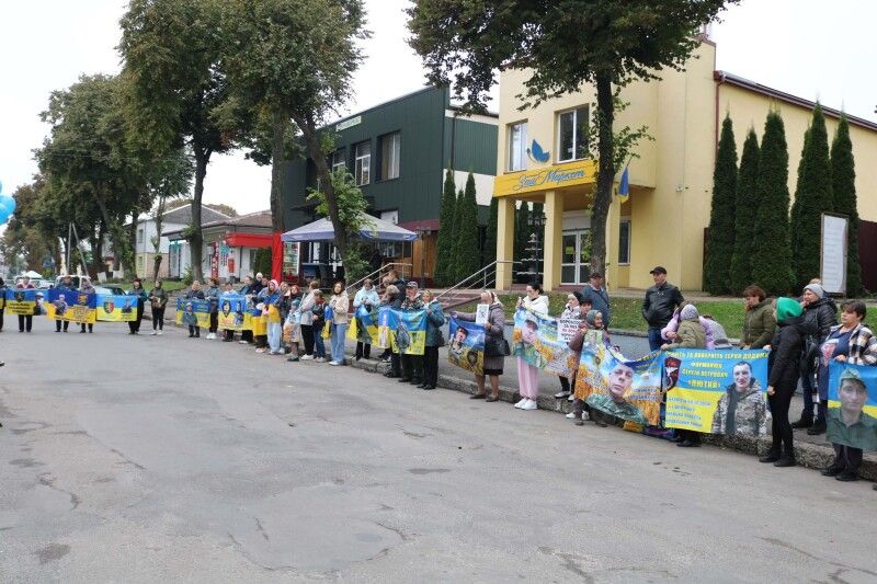 3 жовтня, зібралися у Горохові біля банера зі світлинами зниклих безвісти та полонених військовослужбовців їх рідні та близькі.