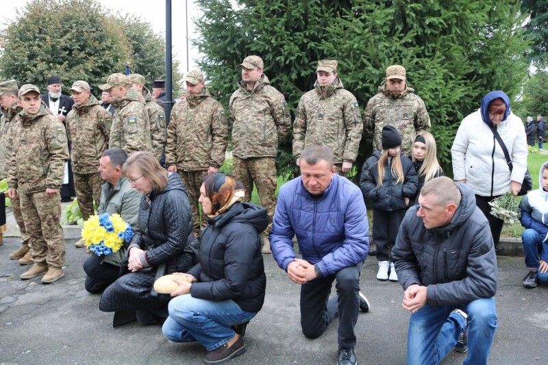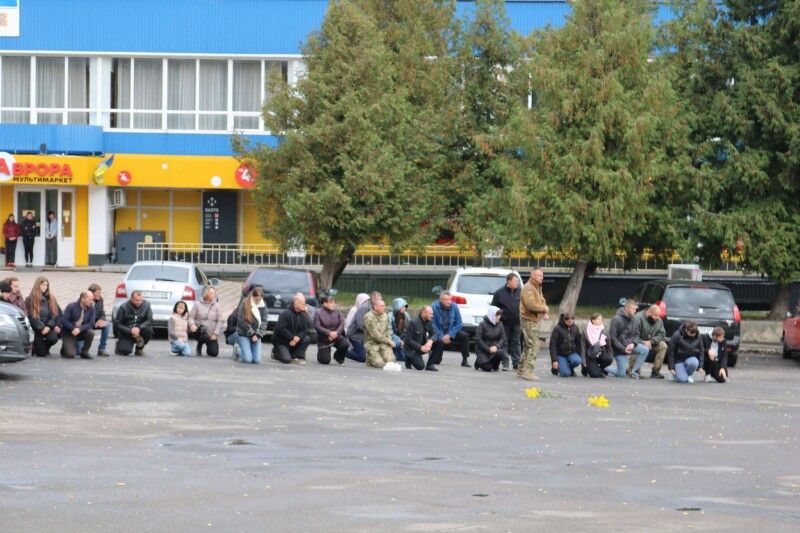Навколішки, схиливши голови, з прапорами та квітами зустрічали Героя в рідному місті.