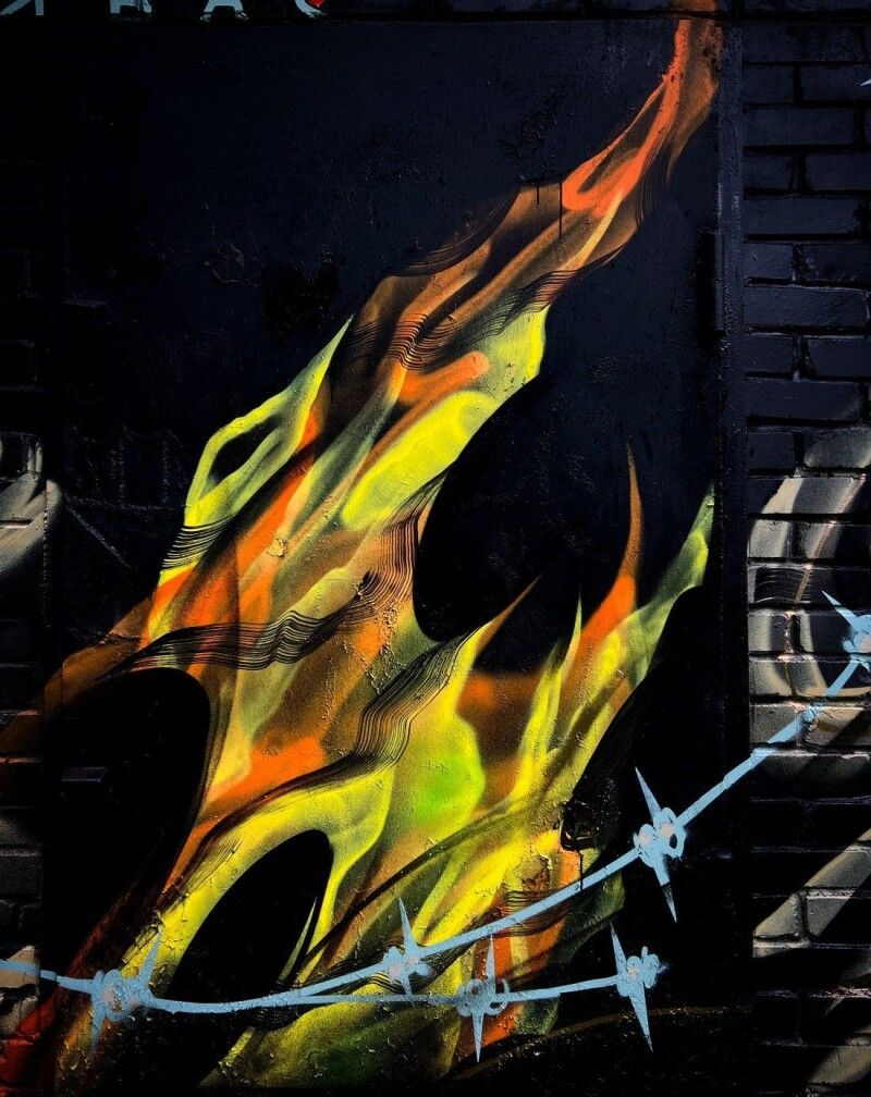 «Колючий дріт і вогонь — символ болю, але й сили, яка не згасає навіть у найтемніших умовах. Ми повинні пам’ятати і говорити про це. Поки всі не повернуться додому», — розповів Андрій у коментарі misto.media.