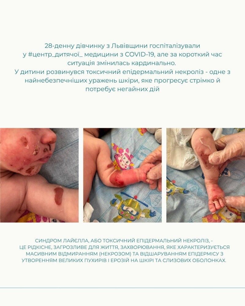 28-денну дівчинку з Львівщини госпіталізували у Центр дитячої медицини з COVID-19, але за короткий час ситуація змінилась кардинально. У дитини розвинувся токсичний епідермальний некроліз – одне з найнебезпечніших уражень шкіри, яке прогресує стрімко й потребує негайних дій.