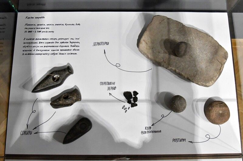Автори мали на меті нагадати сучасникам, як велося людям, які не мали ні електрики, ні інтернету, а лише камінь, дерево, кістки та глину. В експозиції відтворено знаряддя праці та мисливства, верстати і речі повсякденного побуту від кам’яної доби до раннього залізного віку.