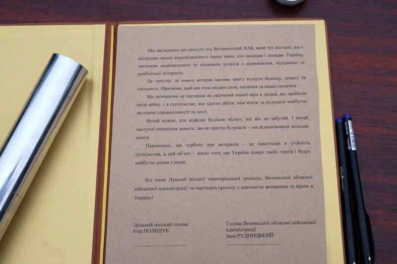 Сьогодні, 9 жовтня 2025 року, начальник ОВА Іван Рудницький разом із Луцьким міським головою Ігорем Поліщуком та ветеранами заклали капсулу під будівництво майбутнього Ветеранського Хабу, що знаходитиметься на вул.Конякіна.