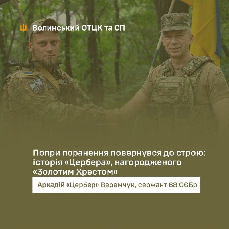 Лучанин Аркадій Веремчук, відомий за позивним «Цербер», удостоєний почесного нагрудного знака Головнокомандувача Збройних Сил України «Золотий Хрест»