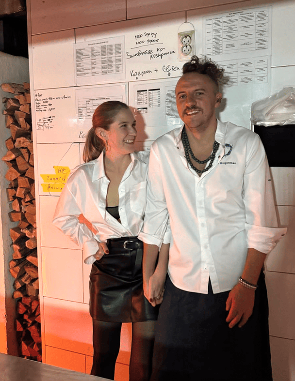 Пара зустрічається вже майже дев’ять місяців, але досі тримала стосунки у секреті. Коханою зірки виявилася Катерина Воскресенська. На фото Євген і Катерина стоять на кухні ресторану, тримаючись за руки. Кулінар написав, що відтепер радуватиме фанів світлинами зі своєю дівчиною частіше.
