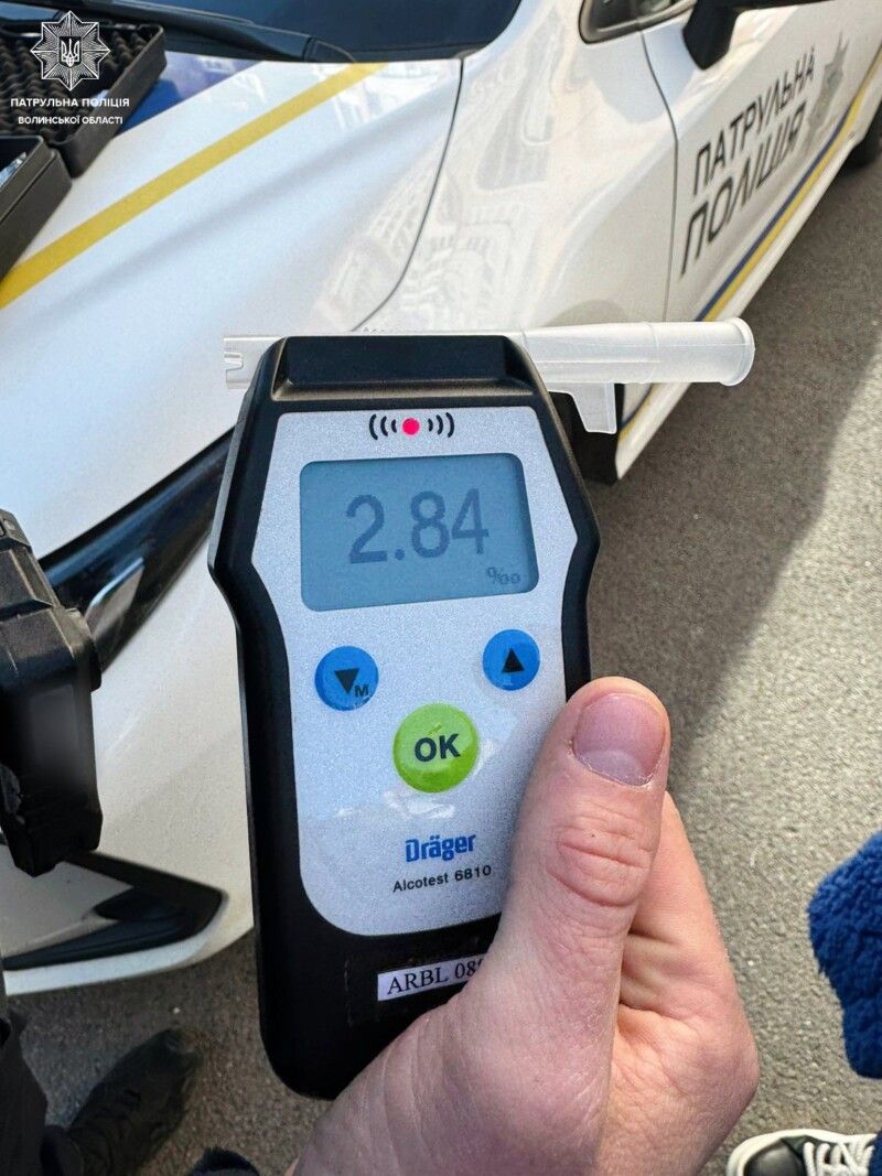 Під час спілкування інспектори помітили у керманички ознаки алкогольного сп’яніння. Огляд, проведений на місці за допомогою приладу Драгер, показав 2,84 проміле, а це майже у 14 разів вище допустимої норми.