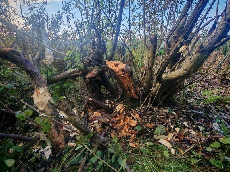 Поруч із заплавою виявлено свіжі сліди діяльності бобра — погризені дерева та гілки свідчать, що цей нічний «інженер» активно готується до зими. Незважаючи на жовтень, на луках ще квітне конюшина лучна (Trifolium pratense) - нагадує, що літо зовсім нещодавно відступило.
