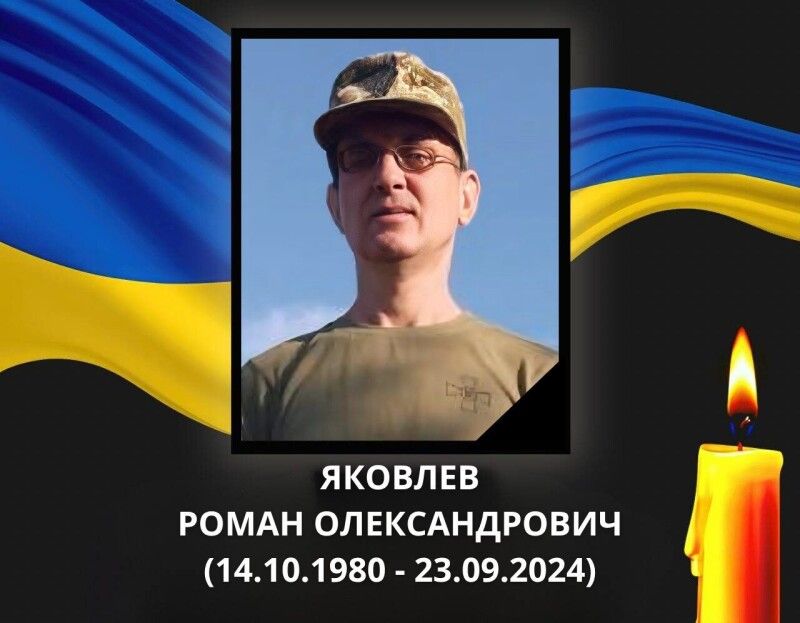 Старший стрілець-оператор 2-го єгерського відділення 2-го єгерського батальйону військової частини А4056, солдат Яковлев Роман Олександрович загинув 23 вересня 2024 року на Донеччині під час виконання бойового завдання в районі н.п. Маринівка Покровського району.