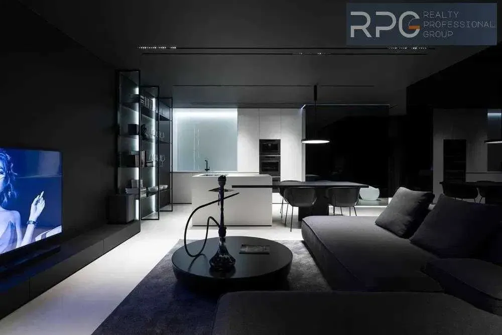 Житло площею 83,3 квадратних метри розташоване на 24-му поверсі 33-поверхового цегляного будинку. Зазначається, що ремонт квартири виконаний за дизайнерським проєктом у футуристичному стилі, має кухню-вітальню площею 34 кв. м, високі стелі (3 м), терасу та панорамні вікна з видом на житловий комплекс «Бульвар фонтанів».
