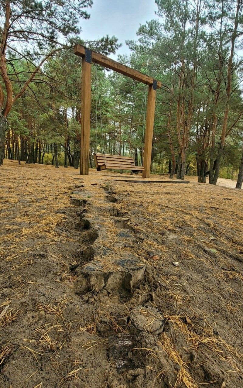 Зірвано дерев’яні сходи, бруківку та лавки викинуто у воду, пошкоджено інформаційні таблички, порушено природний покрив лісу слідами мотоциклів.