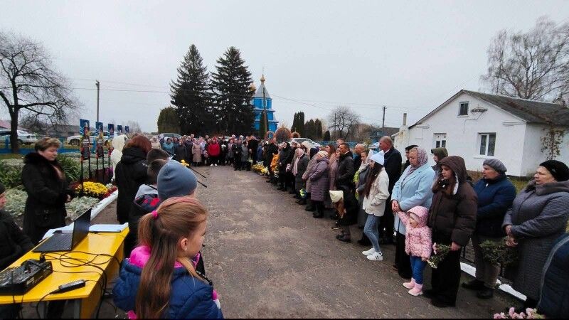 До присутніх звернулися селищний голова Олексій Безсмертний і директор гімназії Людмила Дудик, висловивши подяку воїнам-захисникам і підтримку рідним загиблих. Особливо зворушливим став виступ мами воїна — Надії Єрофіївни Новосад.