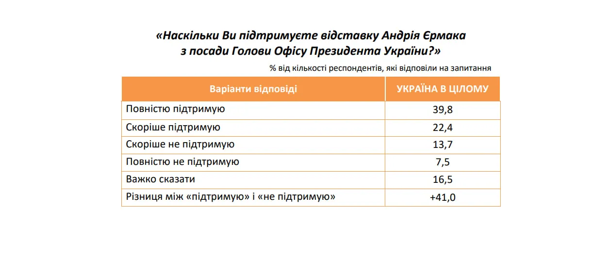 Більшість українців підтримують відставку Єрмака з посади голови Офісу президента