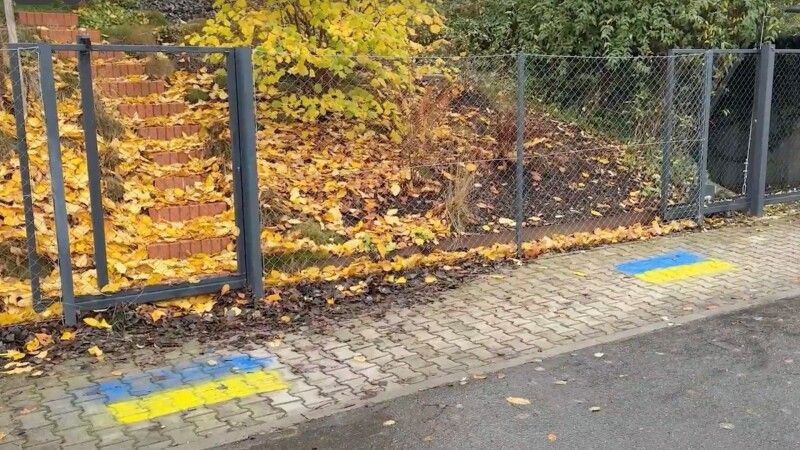 Окрім стягів біля помешкання чеського спікера з’явилися зображення українських прапорів, намальовані балончиком.