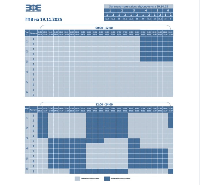 Час фактичного відключення та відновлення електропостачання може відрізнятися на 20–30 хвилин через технологічний процес перемикання черг.