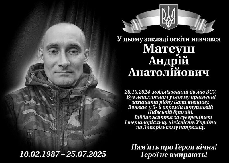 18 листопада 2025 року, у ЗЗСО Лобачівський ліцей відбувся особливий та водночас скорботний захід – відкриття меморіальних дошок нашим Героям – Роману Чепелінському та Андрію Матеушу.