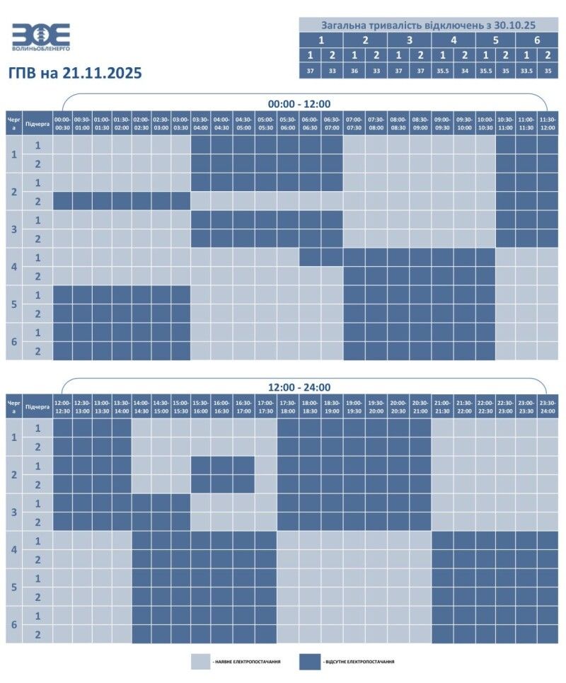 Графік погодинного відключення на 21.11.2025