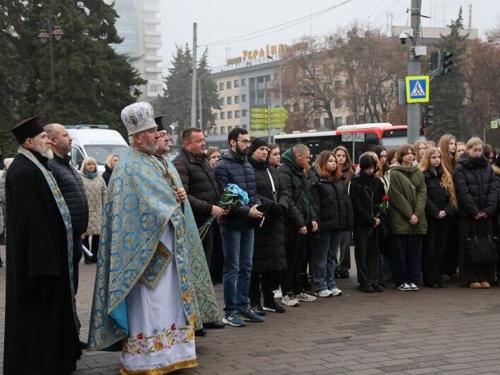 На Театральному майдані священнослужителі відслужили панахиду, а учасники заходу поклали квіти до пам’ятного фотостенду «Герої Небесної Сотні — Герої Нескореної України».