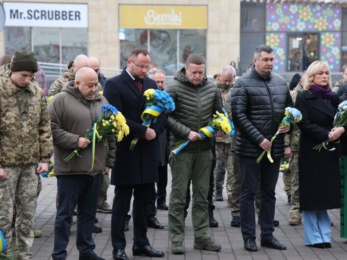 Сьогодні у Луцьку відбулися пам’ятні заходи до Дня Гідності та Свободи, участь у яких взяли Луцький міський голова Ігор Поліщук, його заступник Ірина Чебелюк, представники обласної влади, військовослужбовці, правоохоронці та громадськість.