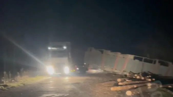 На трасі Маневичі-Ковель поблизу села Пісочне перекинувся лісовоз.