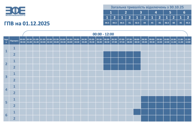 Час фактичного відключення та відновлення електропостачання може відрізнятися на 20–30 хвилин через технологічний процес перемикання черг.