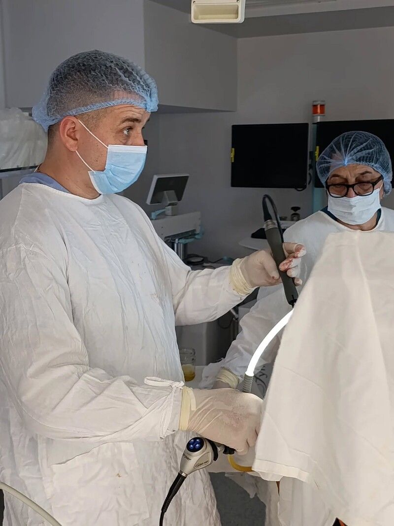 Усе це виконали за допомогою артроскопа — спеціального інструменту з відеокамерою та мікрохірургічними інструментами, що дозволяє працювати з максимальною точністю, не роблячи великих розрізів.