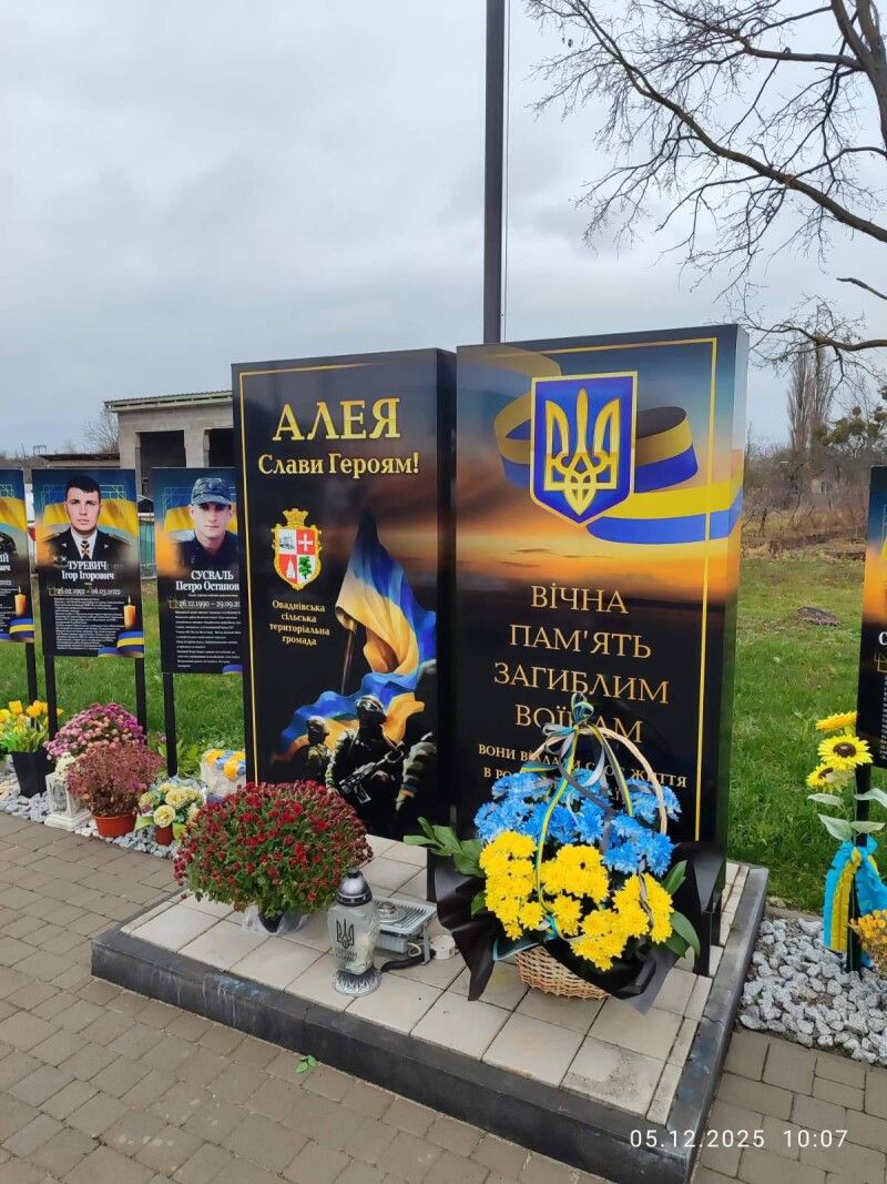 Учора, 5 грудня, на Алеї Слави Героям у селі Овадне відбулося освячення нововстановлених меморіальних дошок світлої пам'яті загиблих героїв-захисників