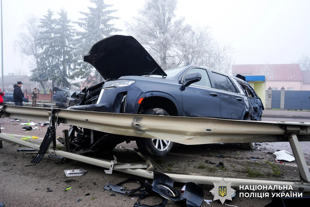 Під час очікування патрульної поліції в Cadillac в’їхав Volkswagen Touareg, після чого до автопригоди долучилися ще п’ять транспортних засобів.