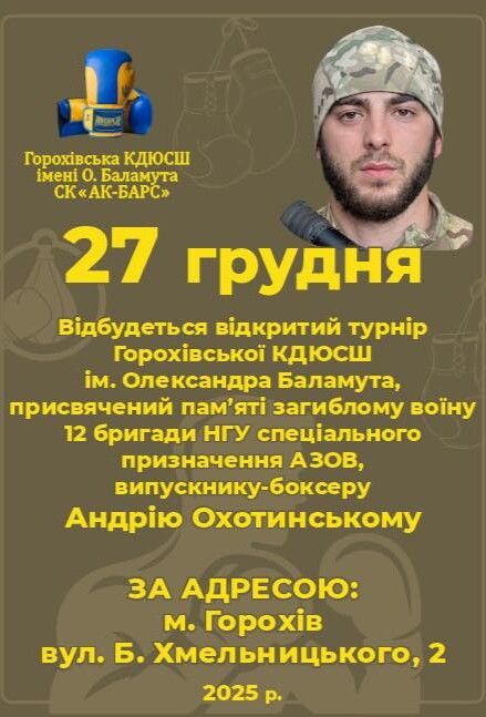Захід присвячений світлій пам’яті загиблого воїна — бійця 12-ї бригади Національної гвардії України спеціалізованого призначення «АЗОВ», випускника - боксера Андрія Охотинського.