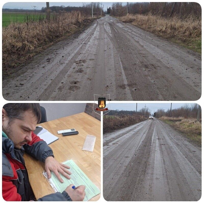 У селі Княгининок в ході перевірки дотримання правил благоустрою було виявлено значне забруднення проїзної частини дороги.