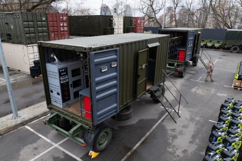 Петро Порошенко передав військовим велику партію енергообладнання – 2 великі контейнерні акумуляторні станції, 4 дизельні генератори по 20 кВт, 118 інверторних генераторів, 113 зарядних станцій на загальну вартість понад 11 мільйонів гривень