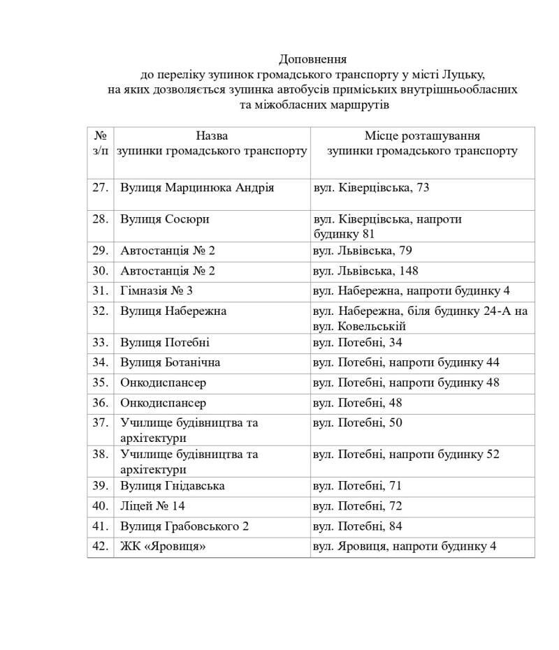 Перелік доповнили новими зупинками для посадки та висадки пасажирів
