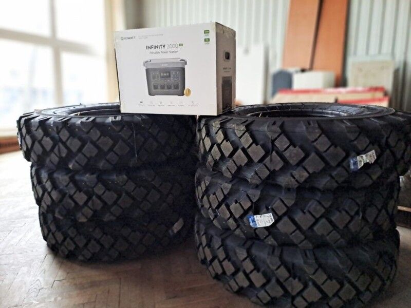 До комплекту допомоги увійшли: 6 автомобільних шин ЗІЛ-131 та портативна зарядна станція Growatt Infinity 2000 Pro. Дизельний навантажувач JAC CPCD30 отримали представники 227-го окремого автомобільного батальйону. Його вартість — понад 470 тисяч гривень.